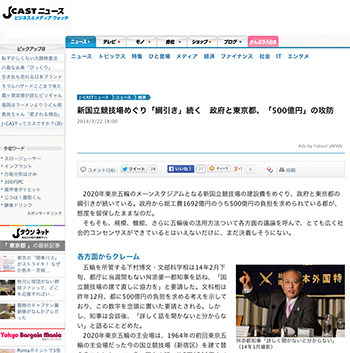 →『新国立競技場めぐり「綱引き」続く 政府と東京都、「500億円」の攻防』