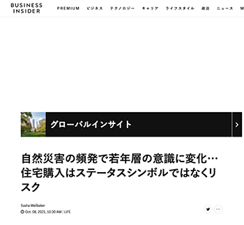 ジャーナル「自然災害の頻発で若年層の意識に変化…住宅購入はステータスシンボルではなくリスク」という記事が、Business Insider Japanに掲載されています。