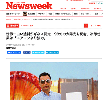 プロダクト・設備「世界一白い塗料がギネス認定 98%の太陽光を反射、冷却効果は「エアコンより強力」」という記事が、ニューズウィーク日本版に掲載されています。