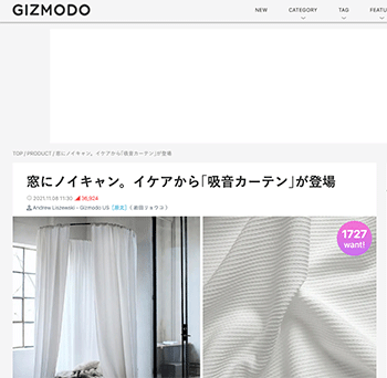 「窓にノイキャン。イケアから「吸音カーテン」が登場」という記事が、Gizmodoに掲載されています。