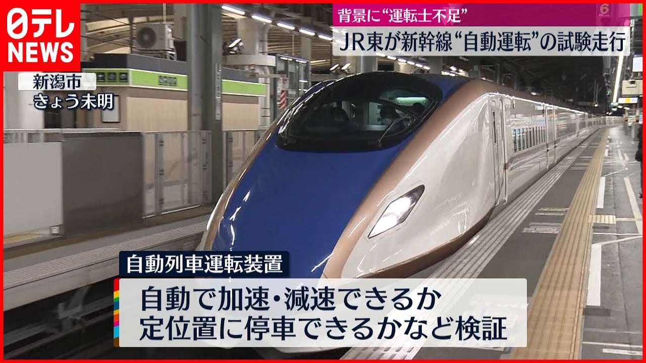 「【革新】新幹線“自動運転”実験 運転士不足背景に」というJR東日本の取り組みについて取り上げている動画ニュースが、youtube( 【公式】日テレNEWS)にて公開されています。