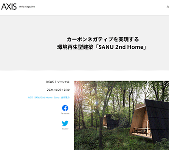 「カーボンネガティブを実現する環境再生型建築「SANU 2nd Home」」というSanuの取り組みについて取り上げている記事が、AXISに掲載されています。