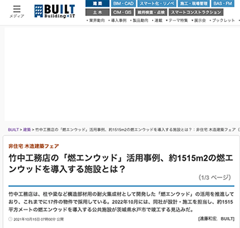 「竹中工務店の「燃エンウッド」活用事例、約1515m2の燃エンウッドを導入する施設とは?」という竹中工務店の取り組みについて取り上げている記事が、BUILTに掲載されています。