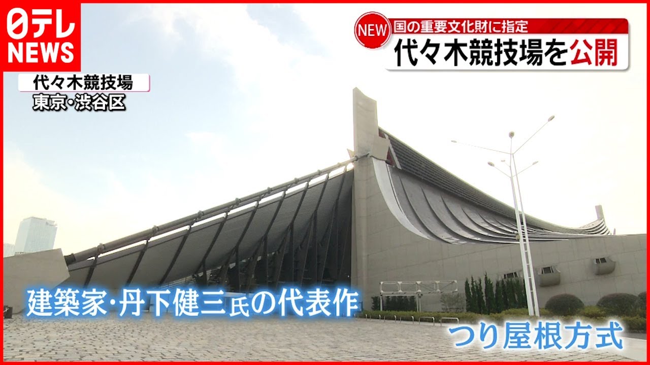 「【代々木競技場】国の重要文化財に指定」という「代々木競技場」が「代々木競技場」が国の重要文化財に指定されたことを受けて、メディアに公開されたことを伝えている動画ニュースが、youtube(【公式】日テレNEWS)にて公開されています。