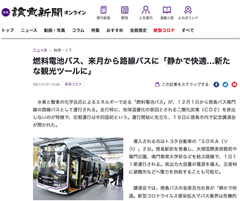 「燃料電池バス、来月から路線バスに「静かで快適…新たな観光ツールに」」という徳島バスの取り組みについて取り上げている記事が、読売新聞オンラインに掲載されています。