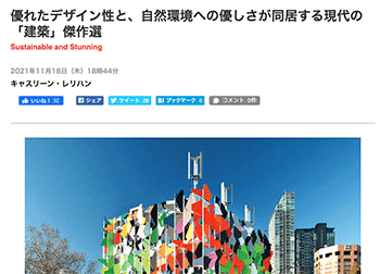 「優れたデザイン性と、自然環境への優しさが同居する現代の「建築」傑作選」という記事が、ニューズウィーク日本版に掲載されています。