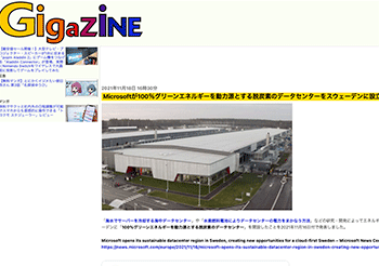 生産施設「Microsoftが100%グリーンエネルギーを動力源とする脱炭素のデータセンターをスウェーデンに設立」というMicrosoftの取り組みについて取り上げている記事が、GIGAZINEに掲載されています。