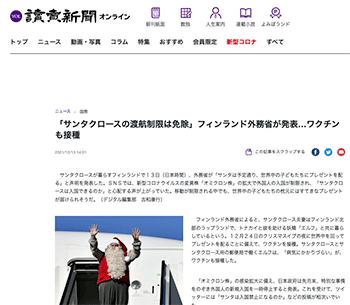 アラカルト「「サンタクロースの渡航制限は免除」フィンランド外務省が発表…ワクチンも接種」という記事が、読売新聞オンラインに掲載されています。