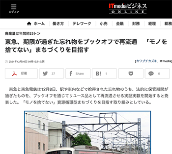 アラカルト「東急、期限が過ぎた忘れ物をブックオフで再流通 「モノを捨てない」まちづくりを目指す」という記事が、ITmedia ビジネスオンラインに掲載されています。