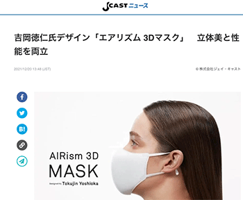 「吉岡徳仁氏デザイン「エアリズム 3Dマスク」 立体美と性能を両立」という吉岡徳仁氏デザインの「エアリズム 3Dマスク」について取り上げている記事が、 J-CASTニュースに掲載されています。