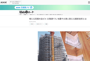 都市防災「増える高層木造ビル 11階建ても 地震や火事に耐える最新技術とは」という横浜で建設が進められている地上11階建ての日本初の「純木造」高層ビルなどについて取り上げている記事が、NHKに掲載されています。