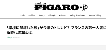 「「環境に配慮した旅」が今年のトレンド? フランスの第一人者に聞く新時代の旅とは。」という記事がフィガロジャポンに掲載されています。