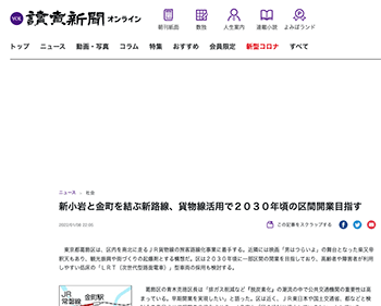 まちづくり「新小岩と金町を結ぶ新路線、貨物線活用で2030年頃の区間開業目指す」という 東京都葛飾区での取り組みについて取り上げている記事が、読売新聞オンラインに掲載されています。