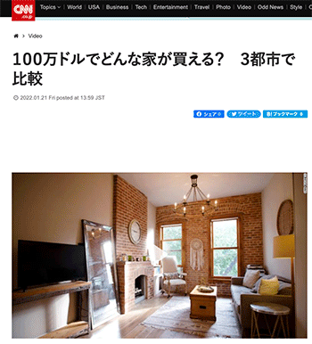 「100万ドルでどんな家が買える? 3都市で比較」という記事が、CNN.co.jpに掲載されています。