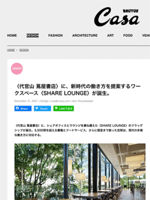 「〈代官山 蔦屋書店〉に、新時代の働き方を提案するワークスペース〈SHARE LOUNGE〉が誕生。」という記事が、Casa BRUTUSに掲載されています。