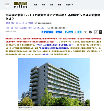 不動産動向「定年後に東京・八王子の賃貸戸建てで大成功! 不動産ビジネスの新潮流とは?」という対談記事が、ダイヤモンド・オンラインに掲載されています。