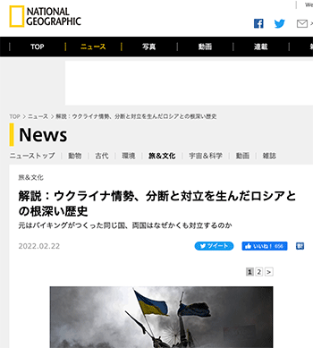 ジャーナル「解説:ウクライナ情勢、分断と対立を生んだロシアとの根深い歴史」という記事が、ナショナルジオグラフィックに掲載されています。