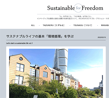 ジャーナル「サステナブルライフの基本「環境循環」を学ぶ」という記事が、Sustainable for Freedomに掲載されています。