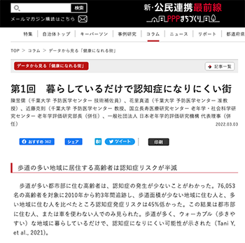 まちづくり「暮らしているだけで認知症になりにくい街」という記事が、新・公民連携最前線|PPPまちづくりに掲載されています。