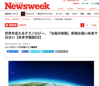 「世界を変えるテクノロジー、「台風の制御」実現は遠い未来ではない【未来予報図02】」という記事が、ニューズウィーク日本版に掲載されています。