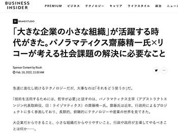 「大きな企業の小さな組織」が活躍する時代がきた。パノラマティクス齋藤精一氏×リコーが考える社会課題の解決に必要なこと(Business Insider Japan)