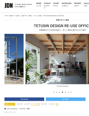 yHa architectsの設計による「TETUSIN DESIGN RE-USE OFFICE」を紹介している記事が、JDNに掲載されています。