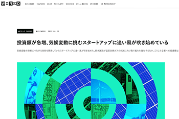 アラカルト「投資額が急増、気候変動に挑むスタートアップに追い風が吹き始めている」という記事が、WIRED.jpに掲載されています。