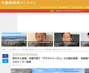 住宅地開発「野村不と東電、分譲戸建て「プラウドシーズン」に太陽光発電 ―首都圏で年300戸、メガソーラー実現」という野村不動産と東京電力エナジーパートナーによる取り組みについて取り上げている記事が、不動産経済オンラインに掲載されています。