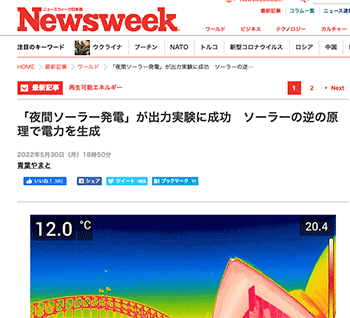 「「夜間ソーラー発電」が出力実験に成功 ソーラーの逆の原理で電力を生成」というオーストラリアの研究チームによる実験について取り上げている記事が、ニューズウィーク日本版に掲載されています。