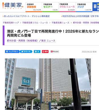 再開発「港区・虎ノ門一丁目で再開発進行中!2026年に新たなランドマーク、高さ180mの再開発ビル登場」という虎ノ門エリアの再開発について取り上げている記事が、健美家に掲載されています。