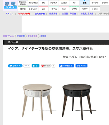 →『イケア、サイドテーブル型の空気清浄機。スマホ操作も』