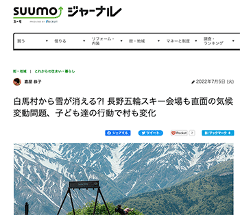 ジャーナル「白馬村から雪が消える?! 長野五輪スキー会場も直面の気候変動問題、子ども達の行動で村も変化」という記事が、スーモジャーナルに掲載されています。