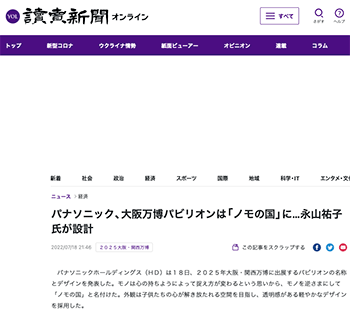 「パナソニック、大阪万博パビリオンは「ノモの国」に…永山祐子氏が設計」というパナソニックの大阪万博パビリオンについて取り上げている記事が、読売新聞オンラインに掲載されています。