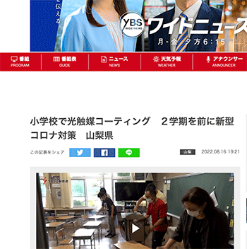 →『小学校で光触媒コーティング 2学期を前に新型コロナ対策 山梨県』