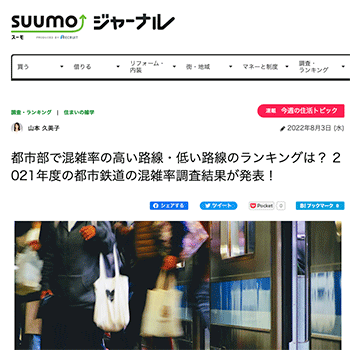 不動産動向「都市部で混雑率の高い路線・低い路線のランキングは? 2021年度の都市鉄道の混雑率調査結果が発表!」という記事が、スーモジャーナルに掲載されています。