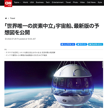 「「世界唯一の炭素中立」宇宙船、最新版の予想図を公開」という「スペースシップ・ネプチューン」の最新の完成予想図が公開されたことを伝えている記事が、CNN.co.jpに掲載されています。