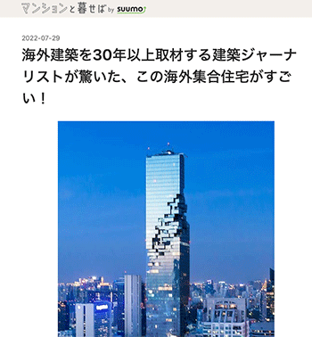 「海外建築を30年以上取材する建築ジャーナリストが驚いた、この海外集合住宅がすごい!」という記事が、マンションと暮せば by SUUMOに掲載されています。