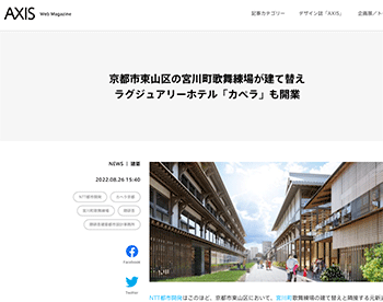 「京都市東山区の宮川町歌舞練場が建て替え ラグジュアリーホテル「カペラ」も開業」というNTT都市開発と隈研吾建築都市設計事務所による取り組みについて取り上げている記事が、axisに掲載されています。