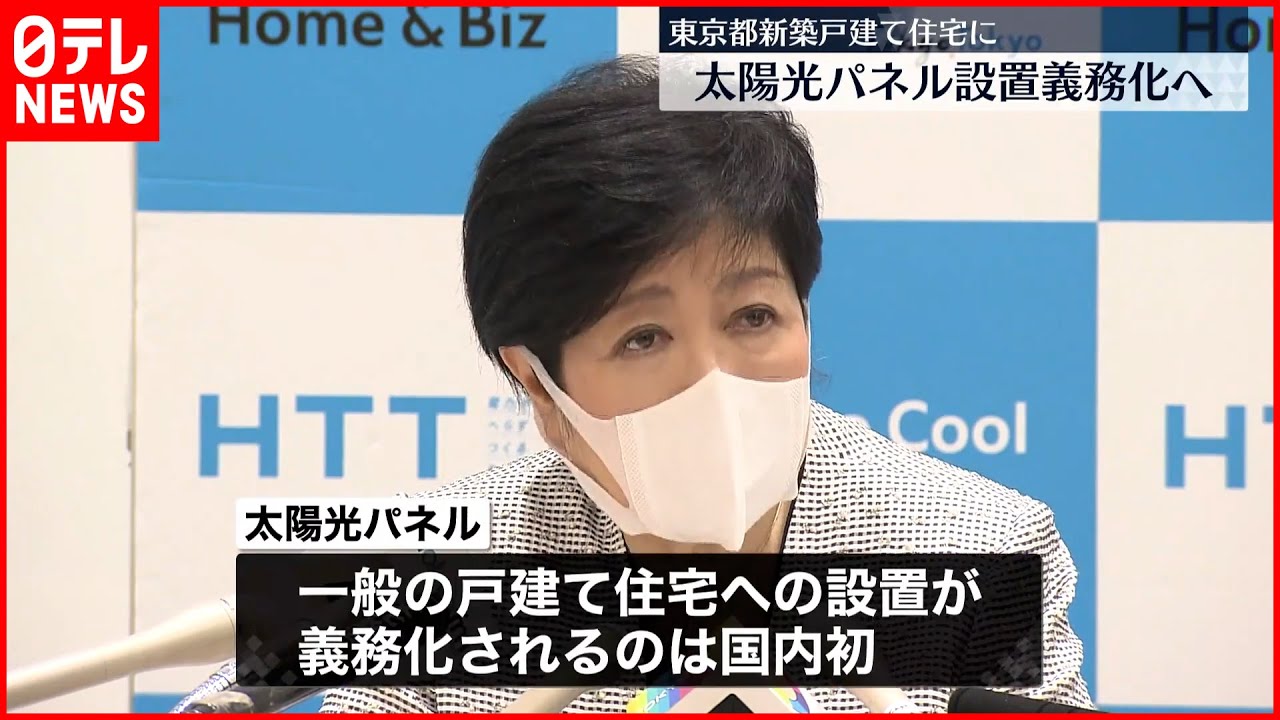 「【戸建て住宅】“太陽光パネル設置義務化”へ 東京都が基本方針を発表」という東京都による基本方針について取り上げている動画ニュースが、youtube(日テレNEWS)にて公開されています。