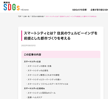 まちづくり「スマートシティとは? 住民のウェルビーイングを前提とした都市づくりを考える」という記事が、講談社SDGs by C-stationに掲載されています。