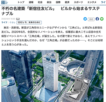 建築「不朽の名建築「新宿住友ビル」 ビルから始まるサステナブル」という記事が、産経ニュースに掲載されています。