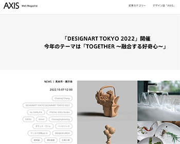 「「DESIGNART TOKYO 2022」開催 今年のテーマは「TOGETHER ~融合する好奇⼼~」」というデザイン&アートフェスティバル「DESIGNART TOKYO 2022」に関する記事が、axisに掲載されています。