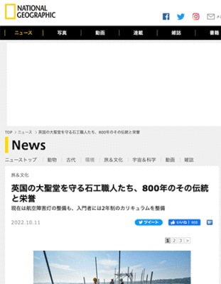 建築「英国の大聖堂を守る石工職人たち、800年のその伝統と栄誉」という記事が、ナショナル ジオグラフィック日本版に掲載されています。