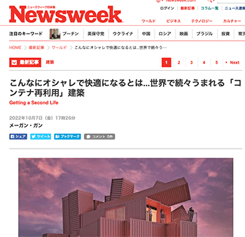 アラカルト「こんなにオシャレで快適になるとは…世界で続々うまれる「コンテナ再利用」建築」という記事が、ニューズウィーク日本版に掲載されています。