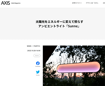 「太陽光をエネルギーに変えて照らすアンビエントライト「Sunne」」という「Sunne」という照明器具について取り上げている記事が、axisに掲載されています。