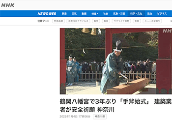 「鶴岡八幡宮で3年ぶり「手斧始式」 建築業者が安全祈願 神奈川」という記事が、NHKに掲載されています。