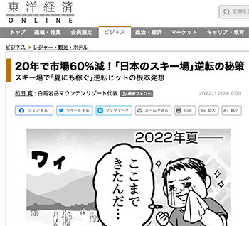 「20年で市場60%減!「日本のスキー場」逆転の秘策 スキー場で「夏にも稼ぐ」逆転ヒットの根本発想」という記事が東洋経済オンラインに掲載されています。