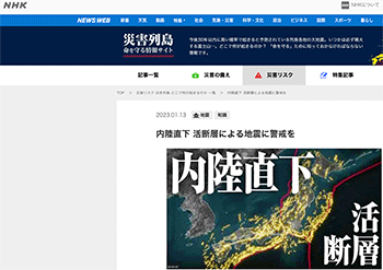 都市防災「内陸直下 活断層による地震に警戒を」という記事がNHKに掲載されています。