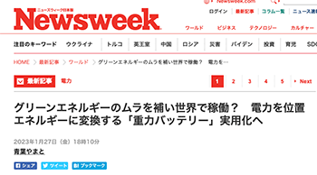 プロダクト・設備「グリーンエネルギーのムラを補い世界で稼働? 電力を位置エネルギーに変換する「重力バッテリー」実用化へ」という記事が、ニューズウィーク日本版に掲載されています。