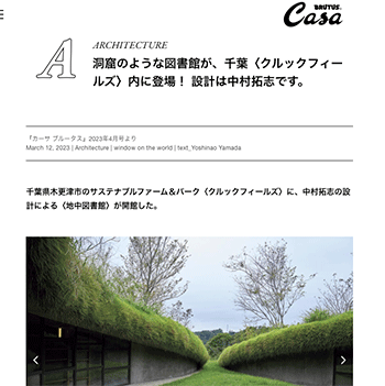 建築「千葉県木更津市のサステナブルファーム&パーク〈クルックフィールズ〉に、中村拓志の設計による〈地中図書館〉が開館した。」というサステナブルファーム&パーク〈クルックフィールズ〉について取り上げている記事が、Casa BRUTUSに掲載されています。